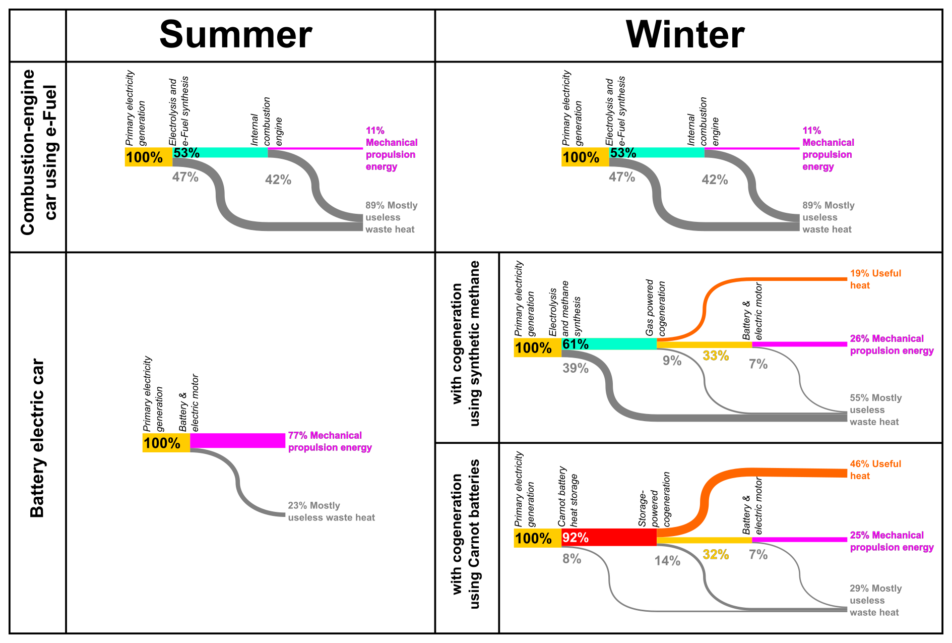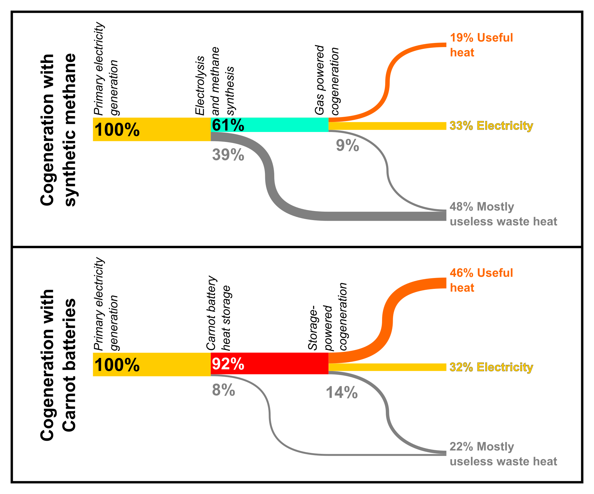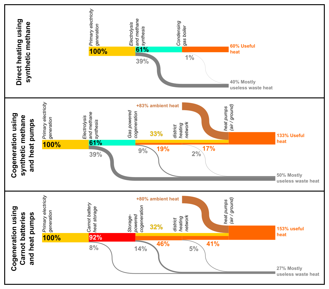 Why to you consider the heat losses from electrolysis and production of synthetic hydrocarbons as useless waste heat?