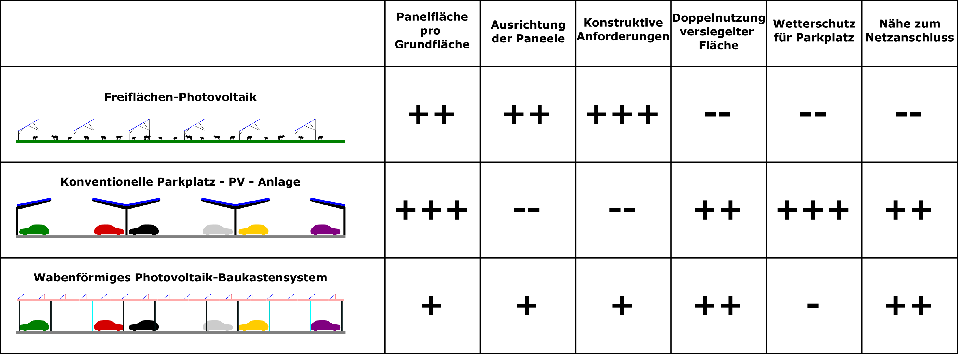 Vor- und Nachteile im Vergleich zu Freiflächen-Photovoltaik und Photovoltaikanlagen auf Parkplätzen in konventioneller Bauweise