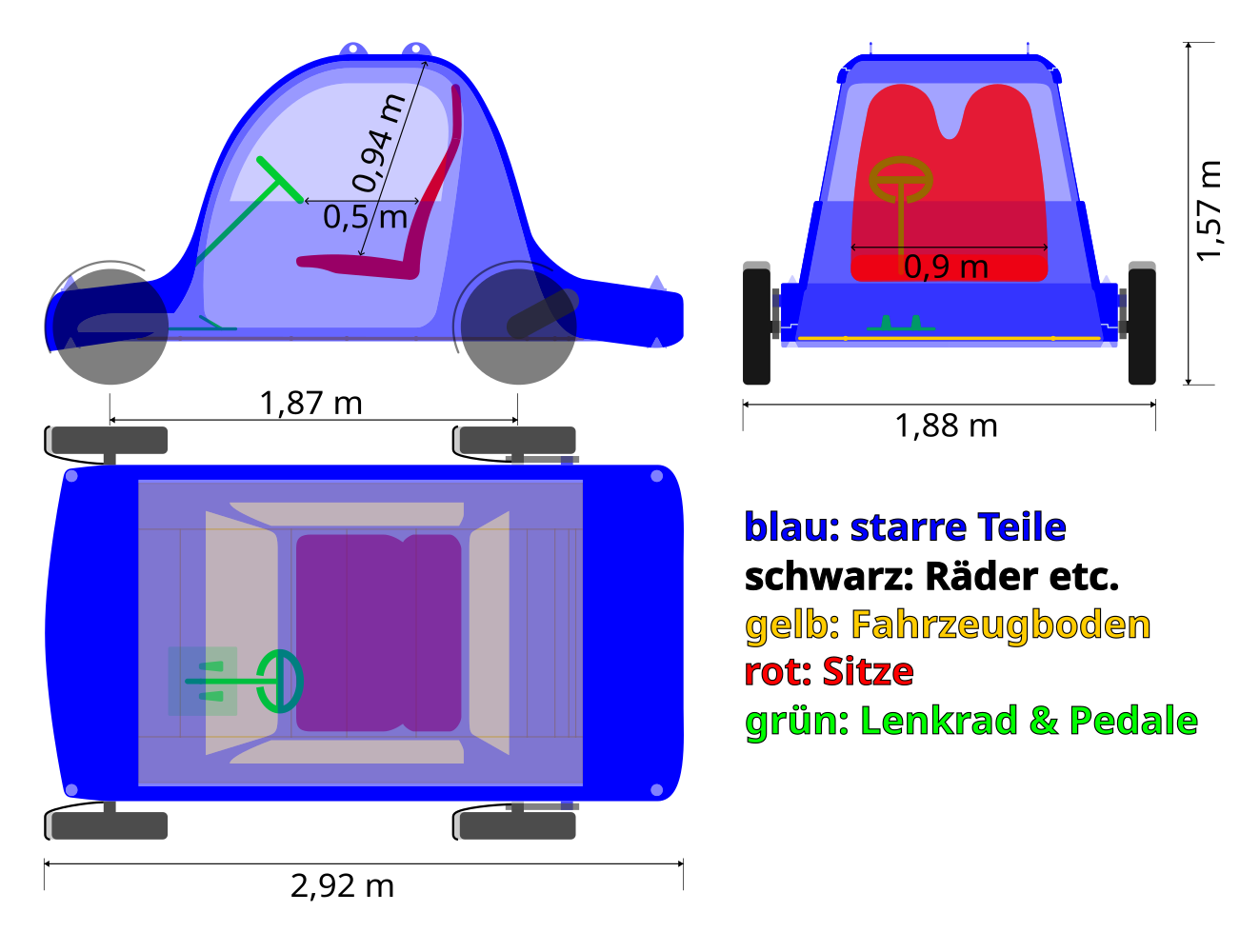 Bei den vorgeschlagenen Fahrzeugen handelt es sich um zweisitzige Leichtelektrofahrzeuge der Klasse L7e mit einem maximalen Leergewicht (ohne Batterien) von 450 kg, einer maximalen Antriebsleistung von 15 kW und einer maximalen Höchstgeschwindigkeit von 90 km/h. Verglichen mit anderen Fahrzeugen dieser Klasse nimmt das stapelbare Leichtelektrofahrzeug bei geringer Höhe eine relativ große Fläche ein. Dies passt gut zum den vorgesehenen ländlichen und suburbanen Einsatzbereichen, denn dort, wo Platz im Straßenraum knapp ist, sind Fahrrad und öffentlicher Verkehr ohnehin die noch besseren Alternativen als Carsharing.